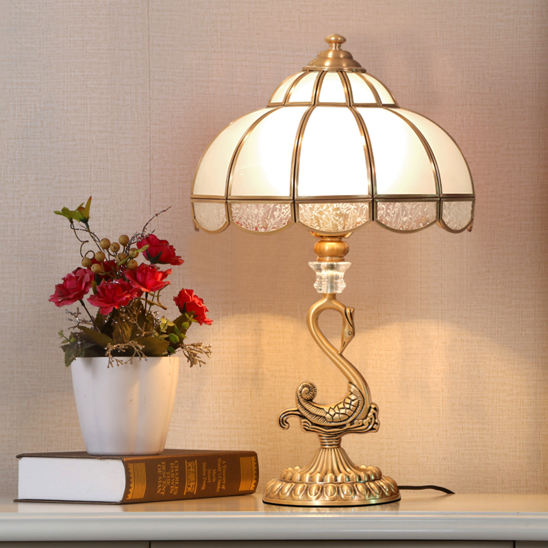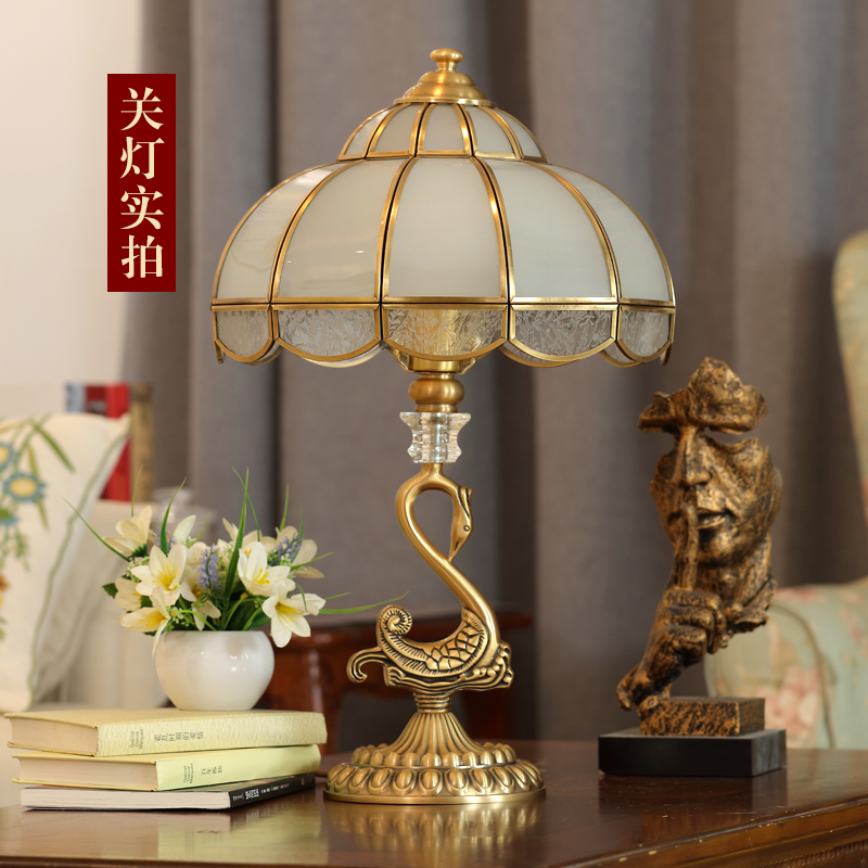 European-style bedroom table lamp light luxury all copper wedding new house retro swan home living room study creative bedside table lamp