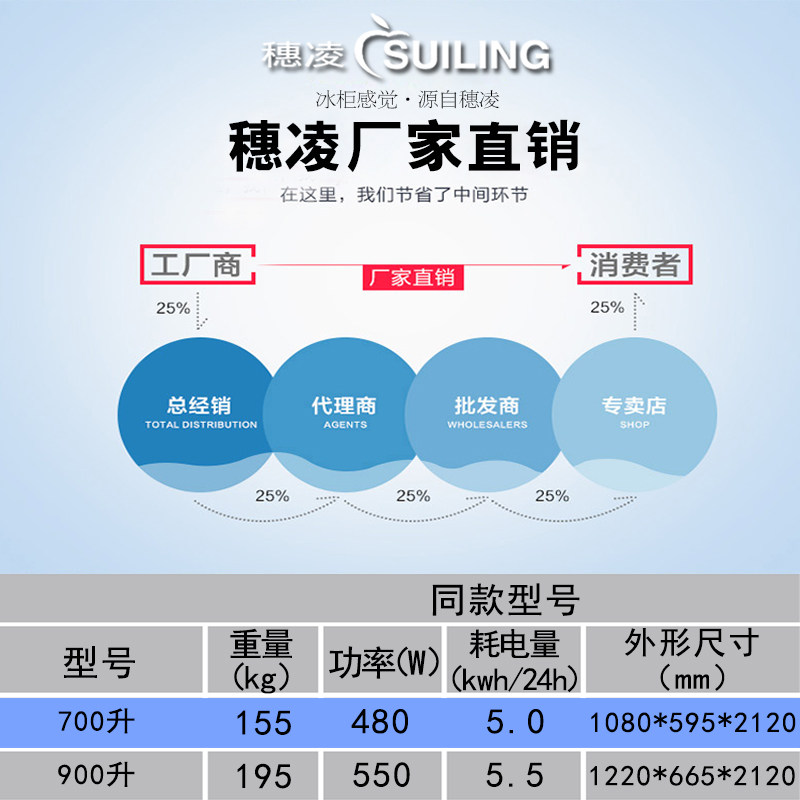 Suiling LG4-700M2 WT freezer commercial vertical air-cooled double-door refrigerated display cabinet Yihetang special refrigerator