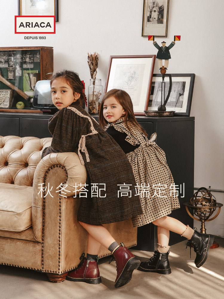 ARIACA children's shoes girls boots genuine leather 2022 new autumn and winter shoes plus velvet two cotton short boots children's Martin boots