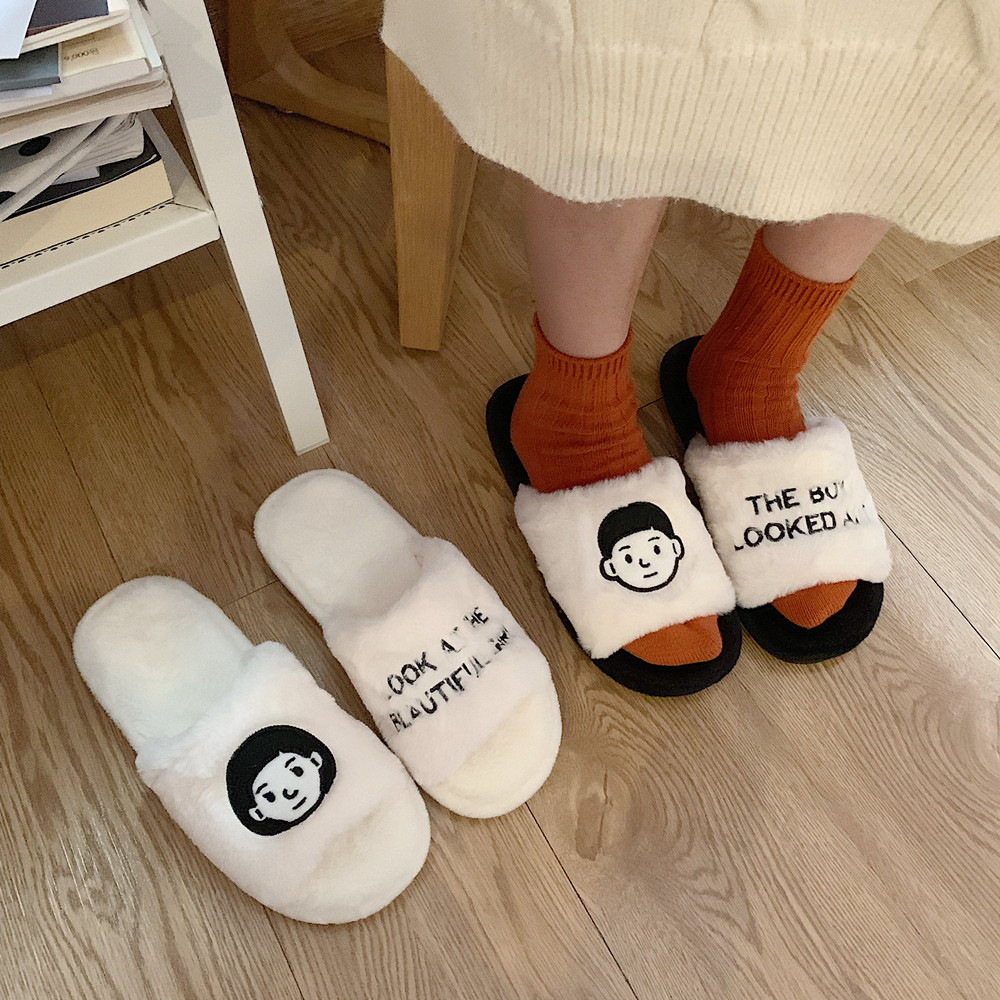 Fine Thin Strips Cotton Slippers Women Indoor home Warm Thick Bottoms Lovers Winter Non-slip Soft Bottom Plush Moon Men