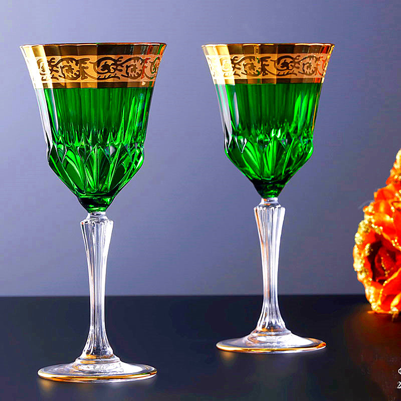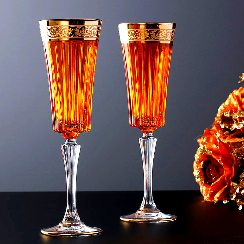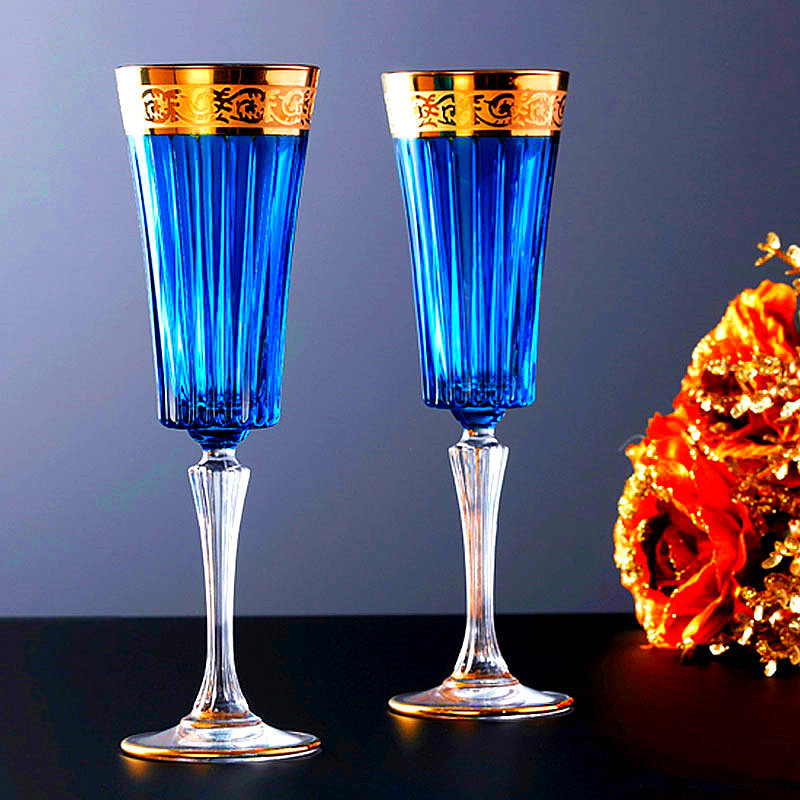 A type of sweet orange champagne glass A type of festive red champagne glass A type of forest green champagne glass A type of sea blue champagne glass A type of mysterious purple champagne glass B type of sweet orange and yellow wine glass B type of festive red wine glass B type of forest green