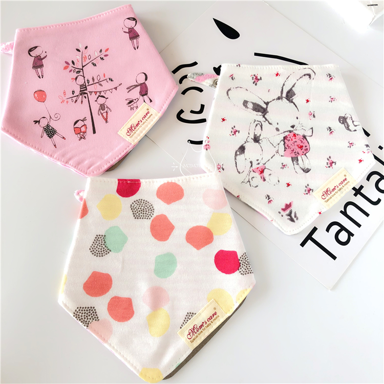 Tidal baby momsCare pure cotton triangular towels thin baby double layer full cotton saliva towel two-faced with cartoon bib