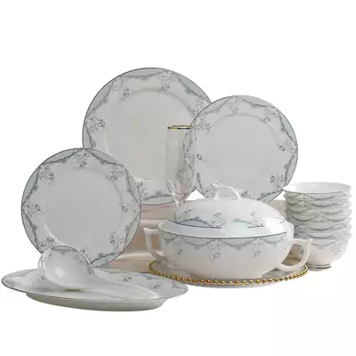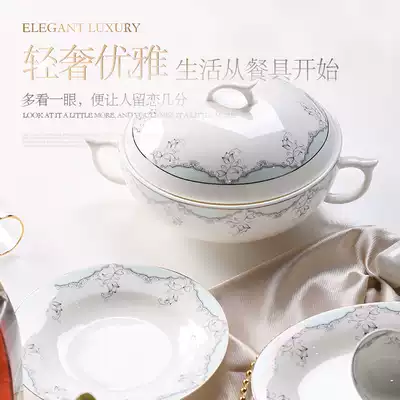 Rsemnia European-style bone China tableware household high-end dishes set Simple gold tableware plate combination gift