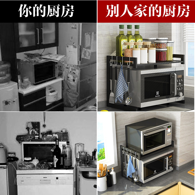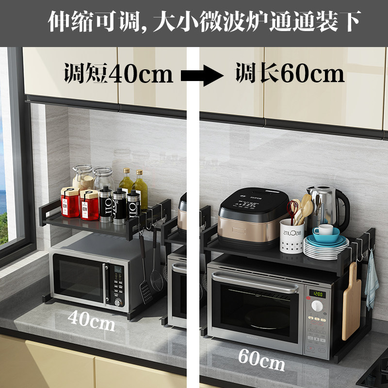 MINGOR stainless steel kitchen microwave oven shelf length adjustable double-decker household storage oven rack multifunctional