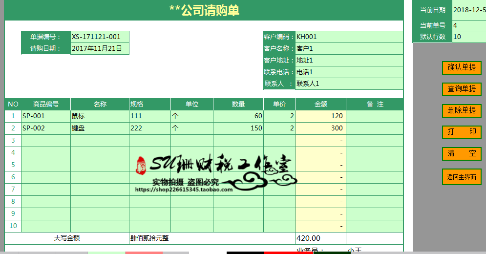 Purchasing Management System Daily Monthly Statistical Excel Financial Form Template Pay Single Gift Purchase Order System
