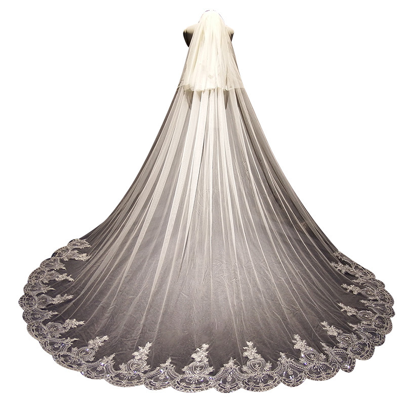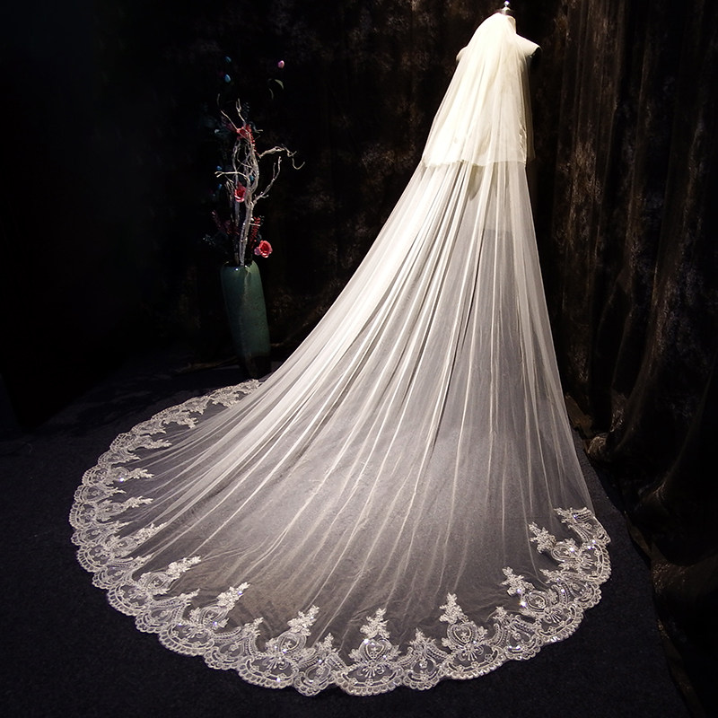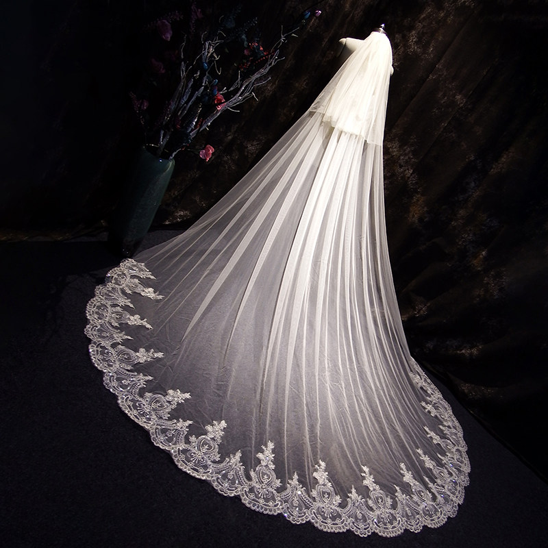 Bridal main wedding dress Long version of champagne lace bright sheet Wedding Wedding Accessories Photo Gallery Photo headwear Superfairy High