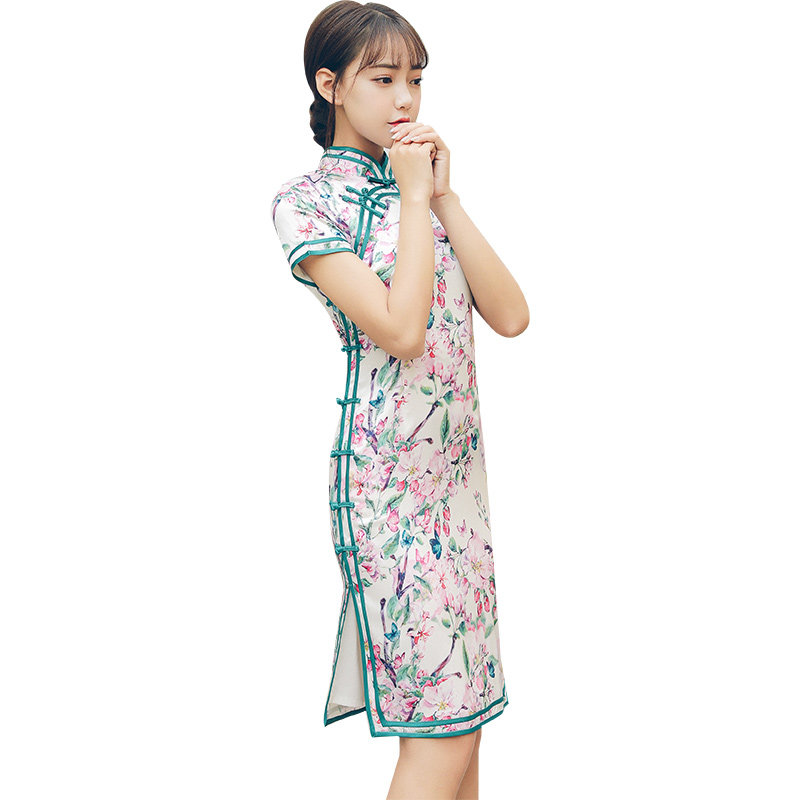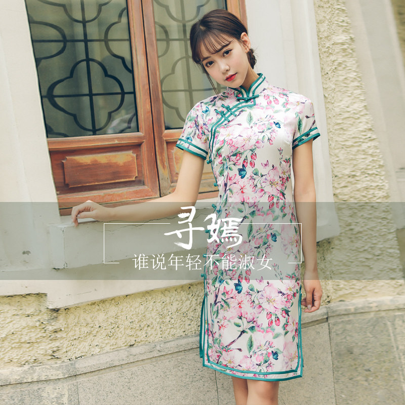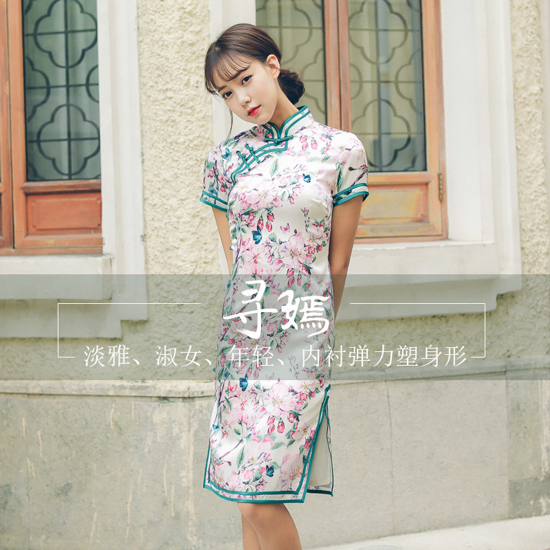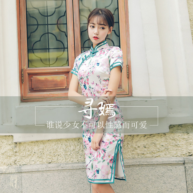 True silk qipao 2022 The new young girl Chinese wind in the middle of a long version of the improved foreign dress Sans silk sexy