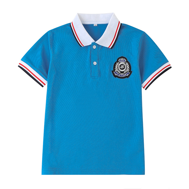 Treasure blue#沈北雨田小学708#深蓝色 red white black collar short sleeve 709#红白黑拼接 red collar short sleeve