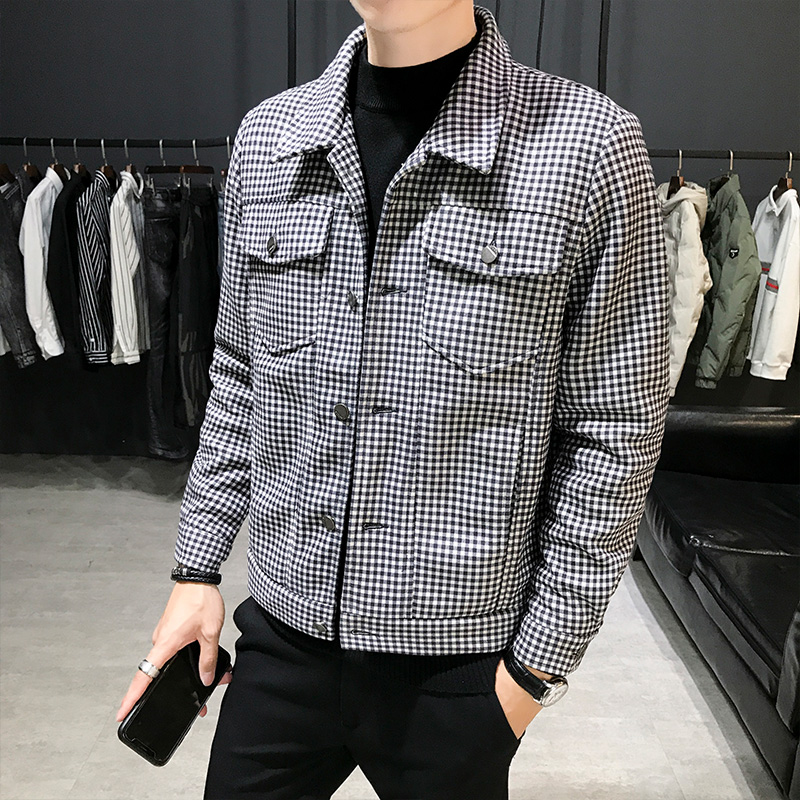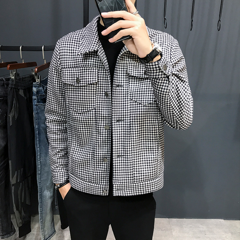 2021 Fall new Korean version of the Thousand Birds Gagger Jackets Male Capo Fashion Blouse Men Personality Plaid Jacket