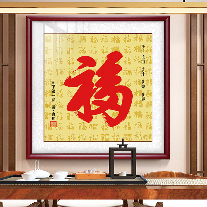 Kangxi Fu calligraphy hanging painting Chinese style with frame mounting decorative painting Gong Wangfu the first Fu living room in the world to meet the door wall porch