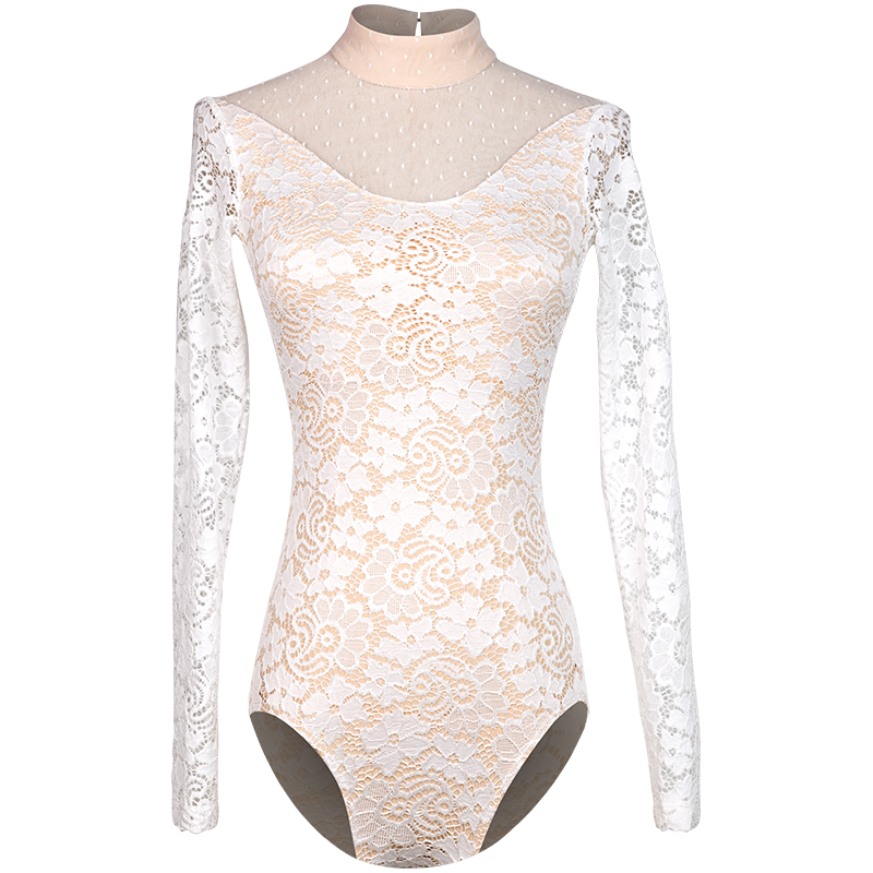 danzbaby art test ballet dance practice uniform adult female gymnastics suit lace high collar long sleeve jumpsuit DZ78