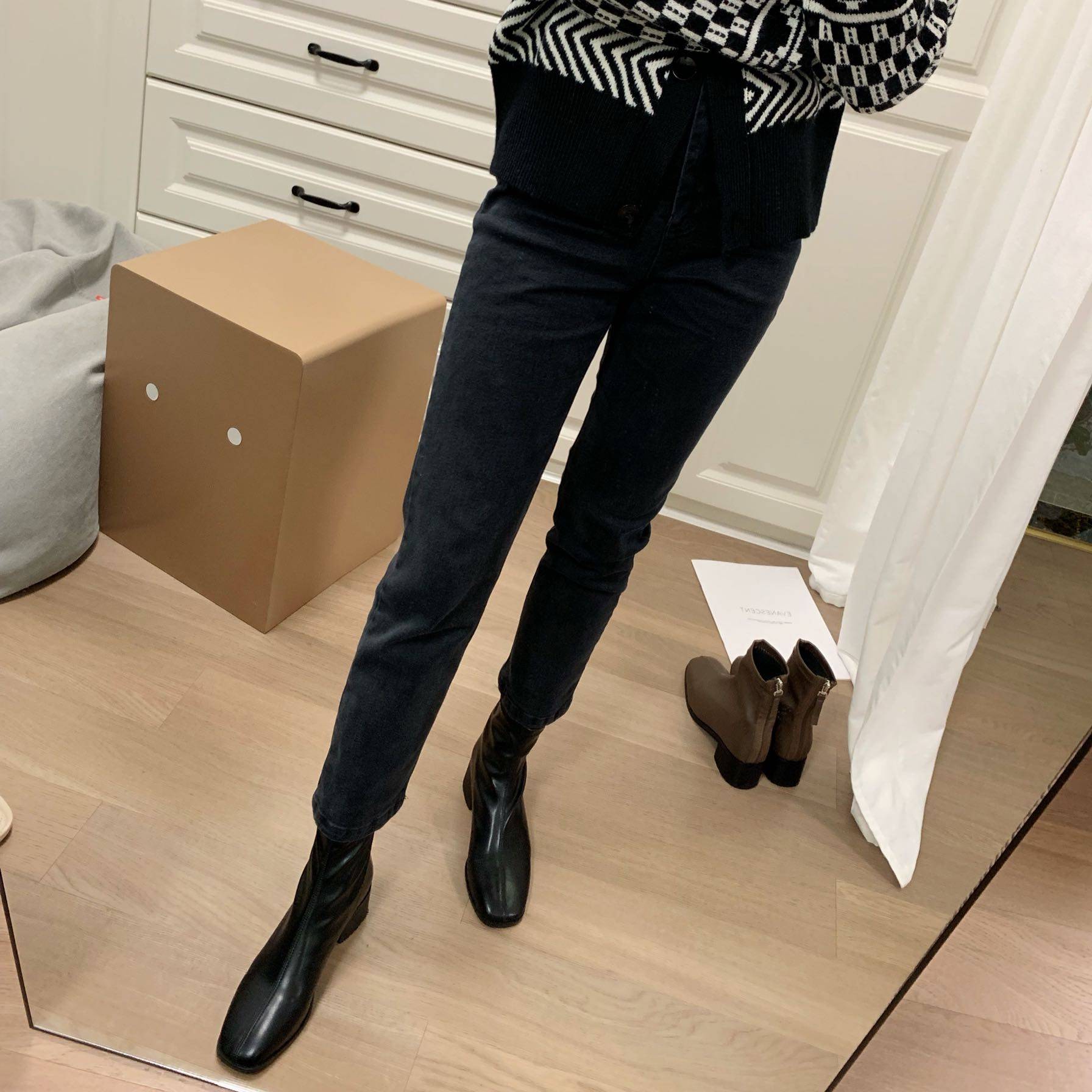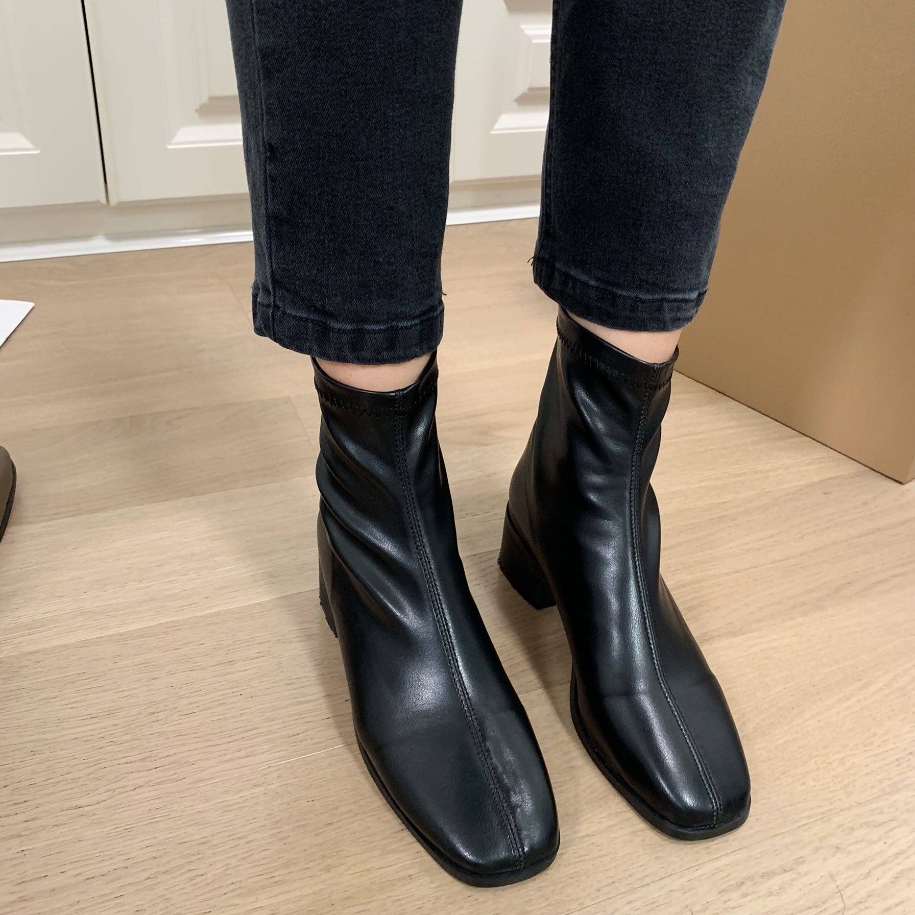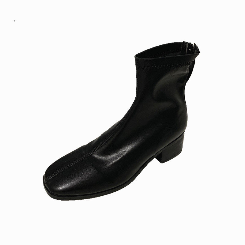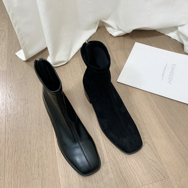 South Korea's East Gate Square Head Coarse Heel Martin Boots Heel Net Red Slim Slim Stretch Soft Leather 100 Hitch