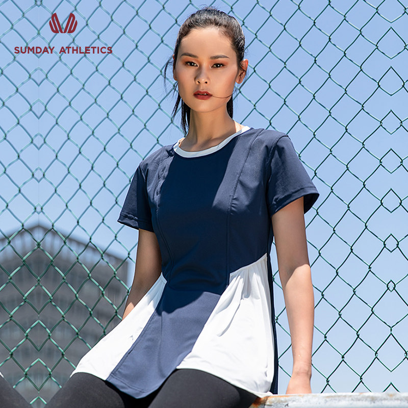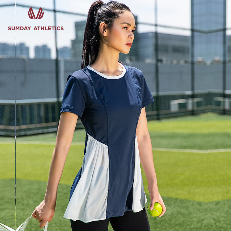 Sumday sports top women's thin short-sleeved t-shirt loose breathable top blouse running gym quick-drying clothes