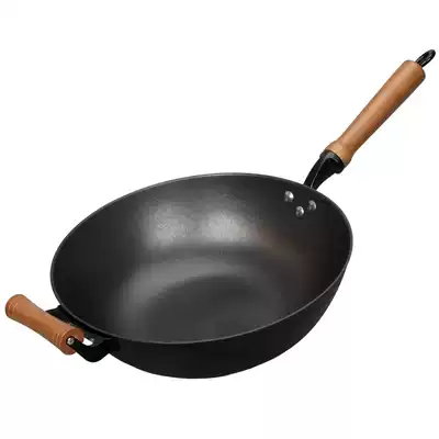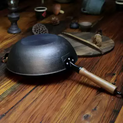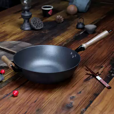 Tiger father and dog old-fashioned iron pot Household cast iron pot flat-bottomed pig iron uncoated wok Tengzhou physical non-stick pot
