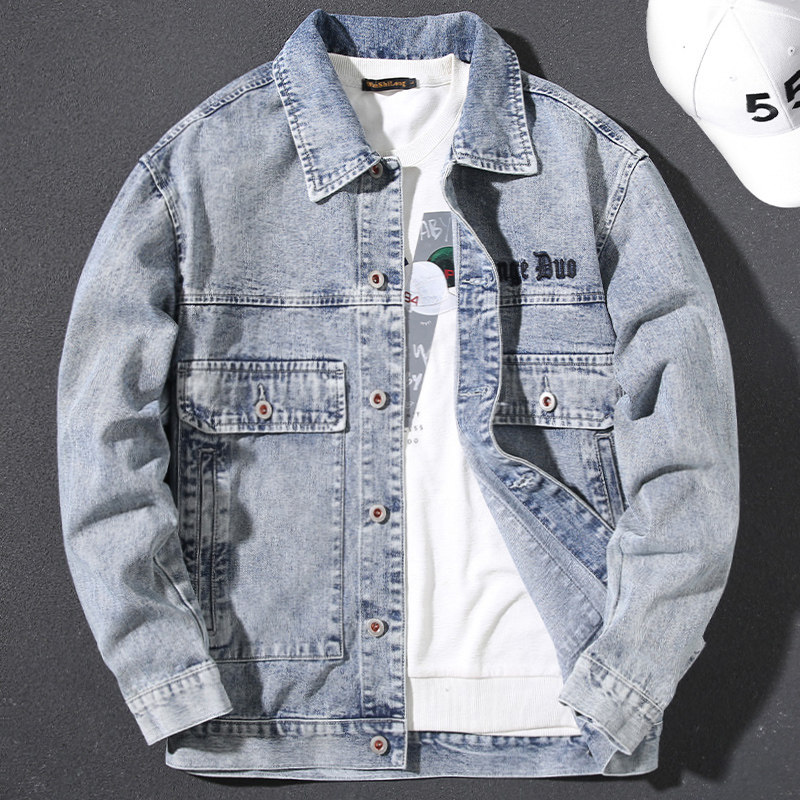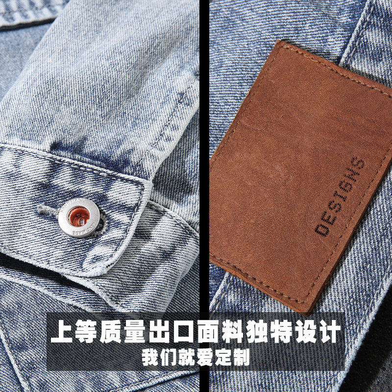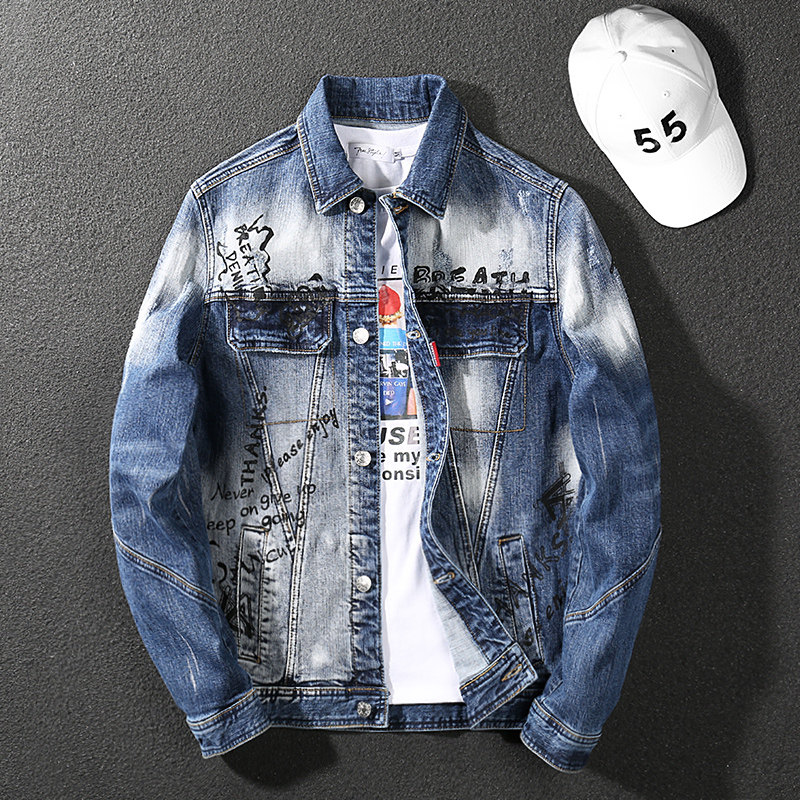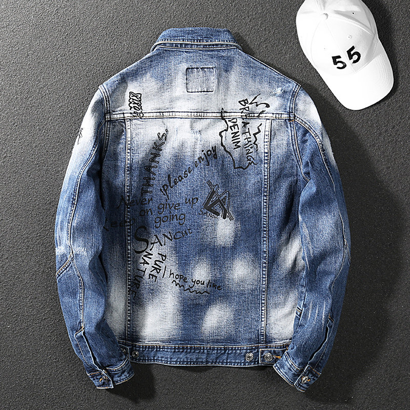 Handsome ins super hot tide brand English pattern jacket men's slim trend spring and autumn denim jacket men's tide