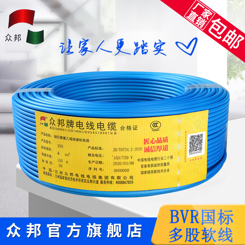 Zhongbang wire and cable BVR2 5 4 6 10 square national standard copper core single core multi-strand flexible wire Home improvement wire