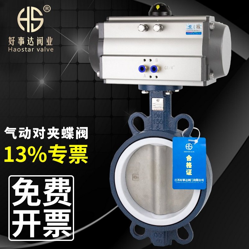 d671f Pneumatic butterfly valve Wafer type PTFE stainless steel valve dn50 65 80 100 150 200 300