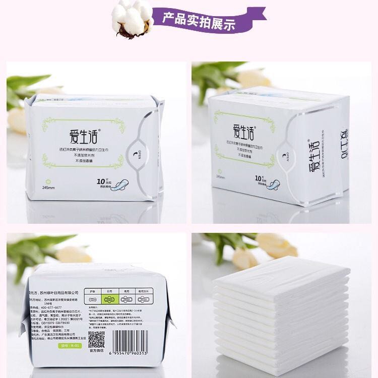 Green Leaf Love Life Sanitary Cotton Daily 245mm Pure cotton ultra-thin breathable negative ion Aunt Catty Shoulder Bag 10 Sheet Bag