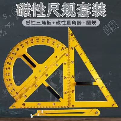 Shanghai teaching teaching triangle ruler set large plastic triangle ruler chalk whiteboard pen compass magnetic protractor ruler drawing ruler with handle blackboard whiteboard mathematics teacher teaching aids