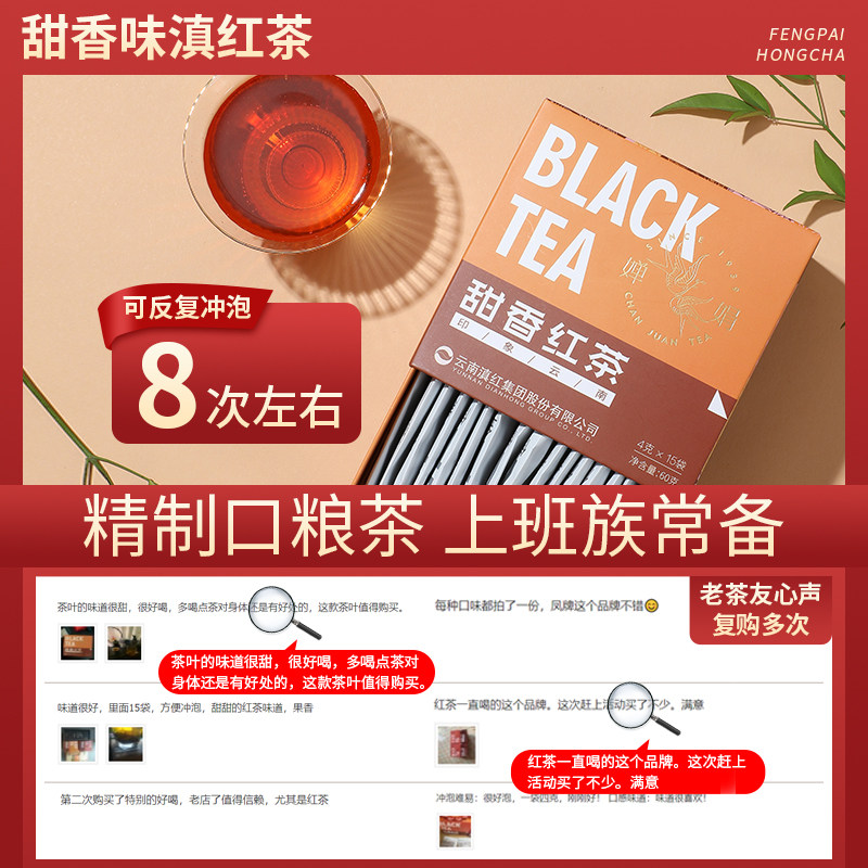 Pinewood black tea Yunnan Fengqing Zhengzong Intense Incense Impression Yunnan Yunnan Red Tea Sweet type 60g