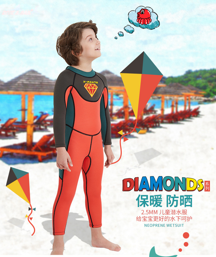 2 5MM children's wetsuit thickened warm winter-proof swimming swimsuit one-piece male and female children sunscreen surfing jellyfish