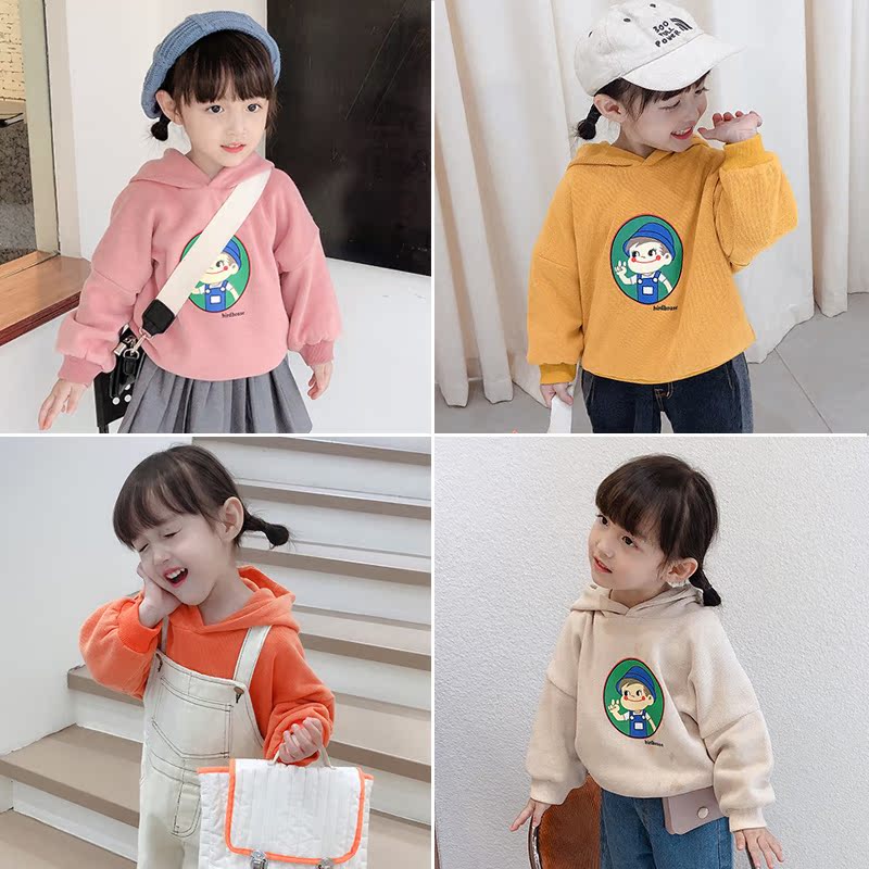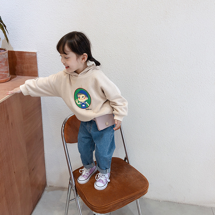 2021 autumn new cartoon casual thick cotton children Han Fan fashion plus velvet double-layer sweater tide 6116