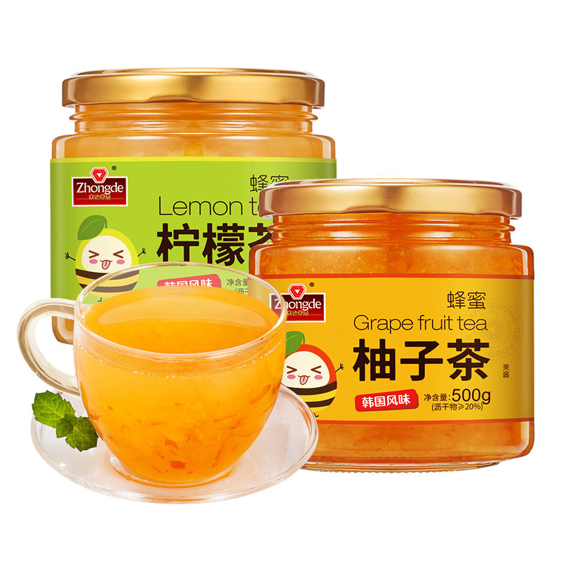 Zhongde Honey Grapefruit tea Lemon tea 1kg canned flushing drink Brewing water Brewing drink Brewing fruit tea sauce