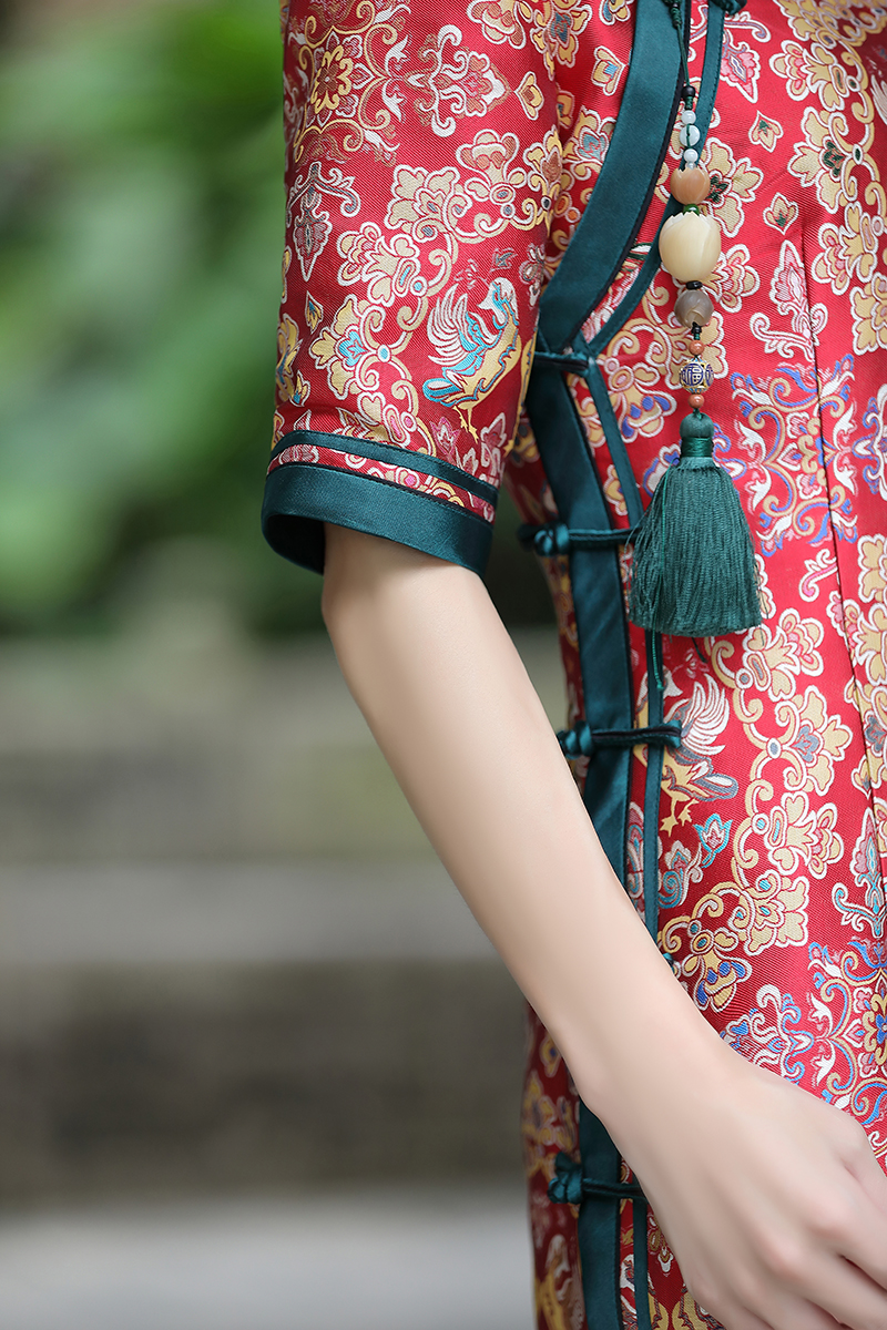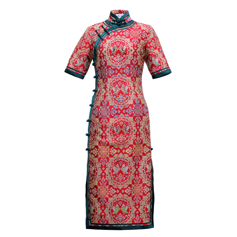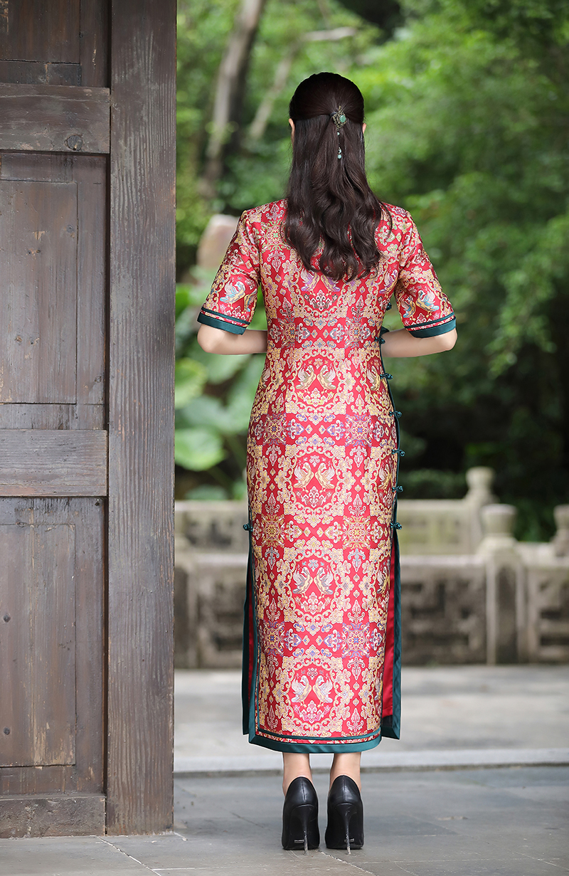 Xi Han Yue Red Song Jin Silk Four Famous Brocade Handmade High Grade Cheongsam Women's Autumn Wedding Banquet Traditional elegance