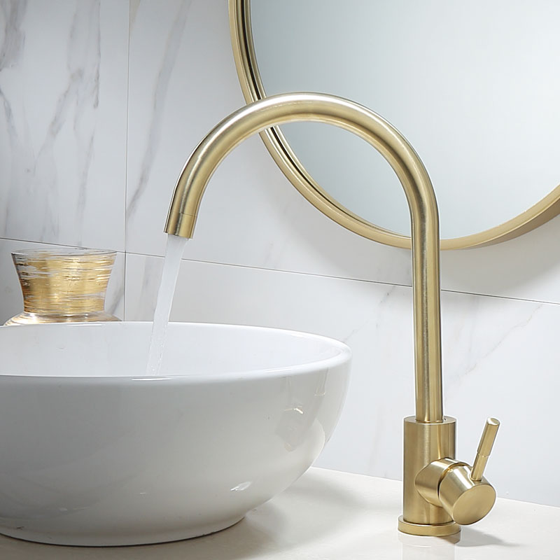 Wire Drawing Gold Kitchen Hot And Cold Taps Stainless Steel Sink Wash Vegetable Basin Wash Basin Splash-Proof Golden Tap Home