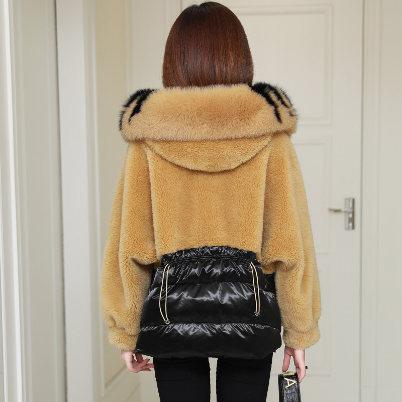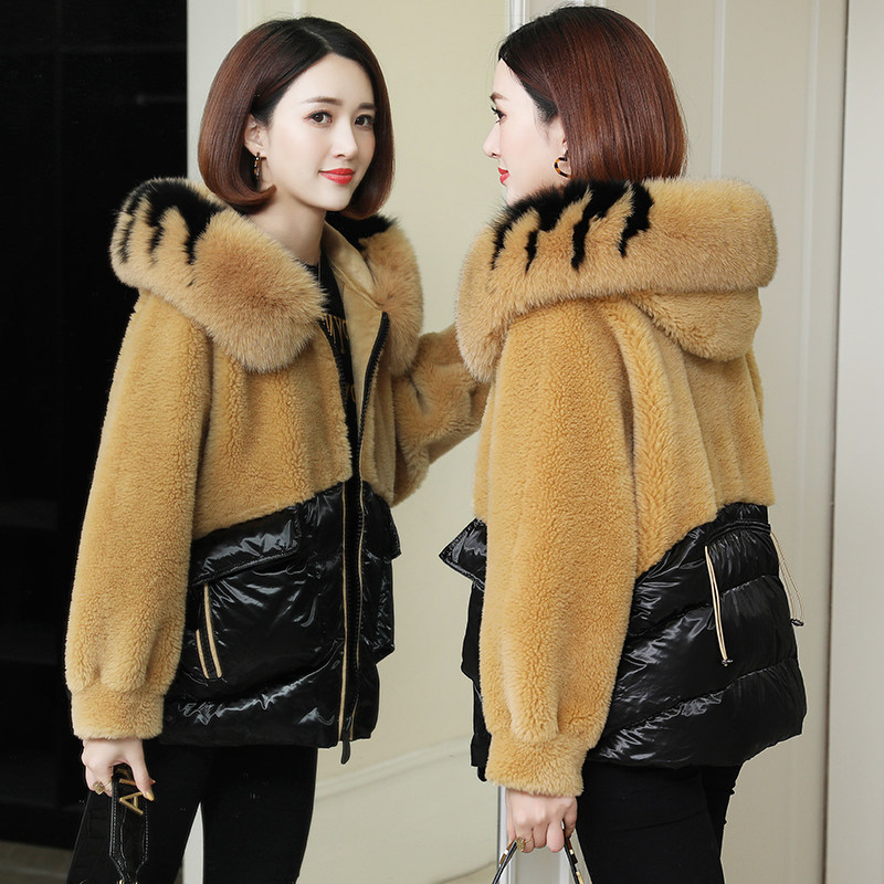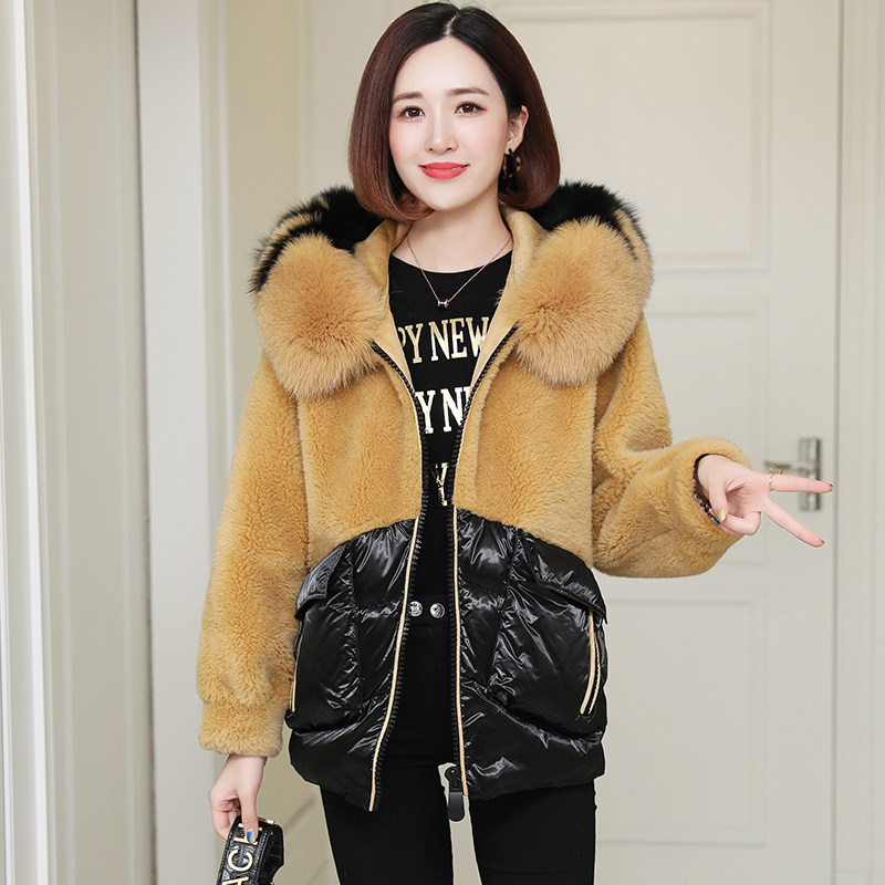 zqqz sheep cut velvet big coat female short fox fur collar new grain wool leather straw jacket down jacket 8006