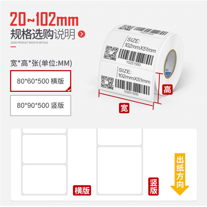 Copper version Paper adhesive labels Width 20 to more than 60 Specifications Single row Multi-row adhesive labels Note Code Sticker Clothing Chandler Label Paper Suitable for Jiabo GP-1524T Barcoding Printer-Tao