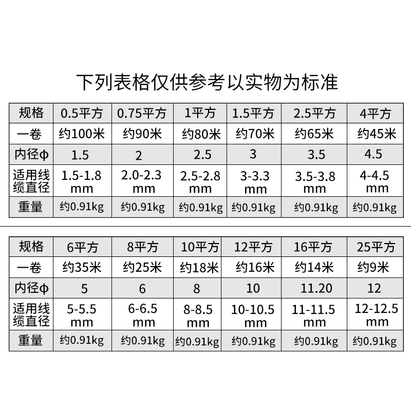 White plum blossom tube--0 5 square-110 meters White plum blossom tube--0 75 square-100 meters White plum blossom tube--1 square-90 meters White plum blossom tube--1