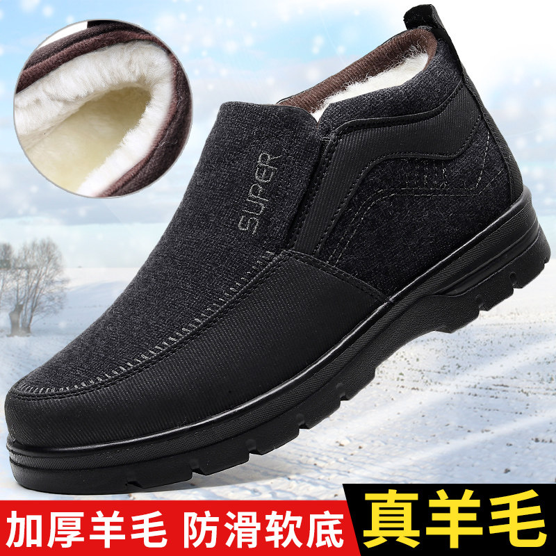 Old Beijing Cloth Shoes Warm Shoes Men Cotton Shoes Winter Wool Plus Suede Non-slip Casual High Cylinder Middle-aged And Old Dad Shoes