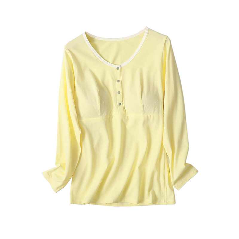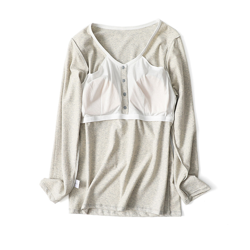 Breastfeeding autumn clothes tops pure cotton long-sleeved pregnant women postpartum confinement clothes bottoming shirts front button breastfeeding clothes pajamas spring and autumn