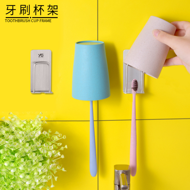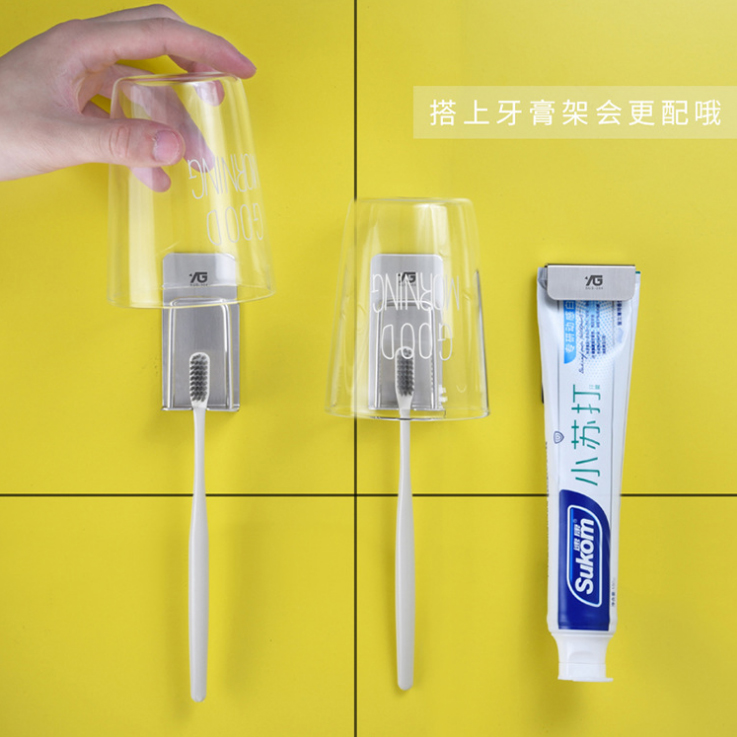 304 stainless steel wall toothbrush frame adhesive mouthwash cup creative hanging frame without punching makeup room