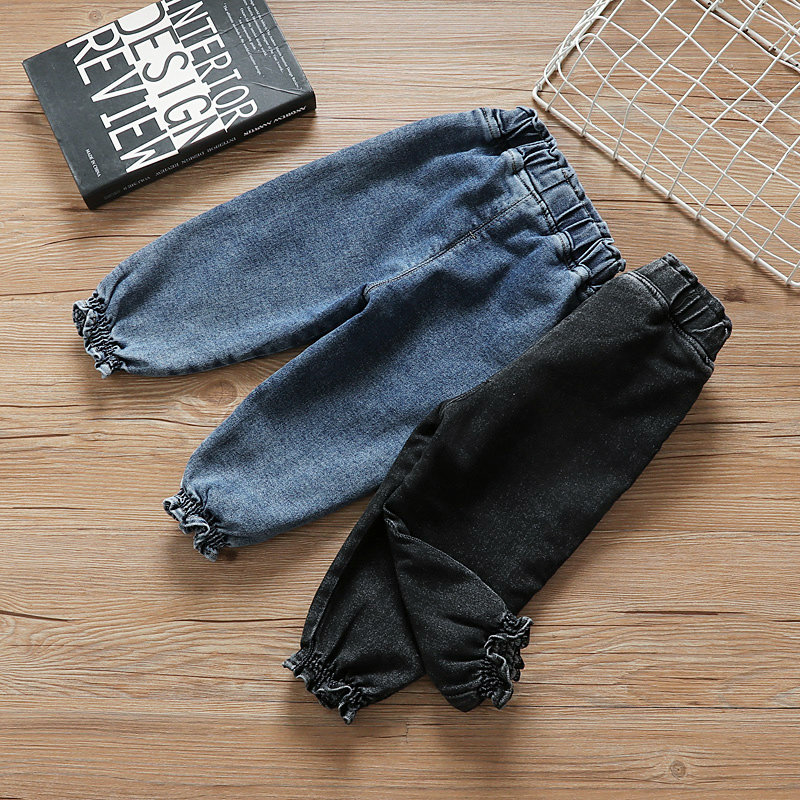 Girls' fleece jeans 2021 new winter clothing children's clothing pants Korean version of the Western style thick trousers female baby casual pants