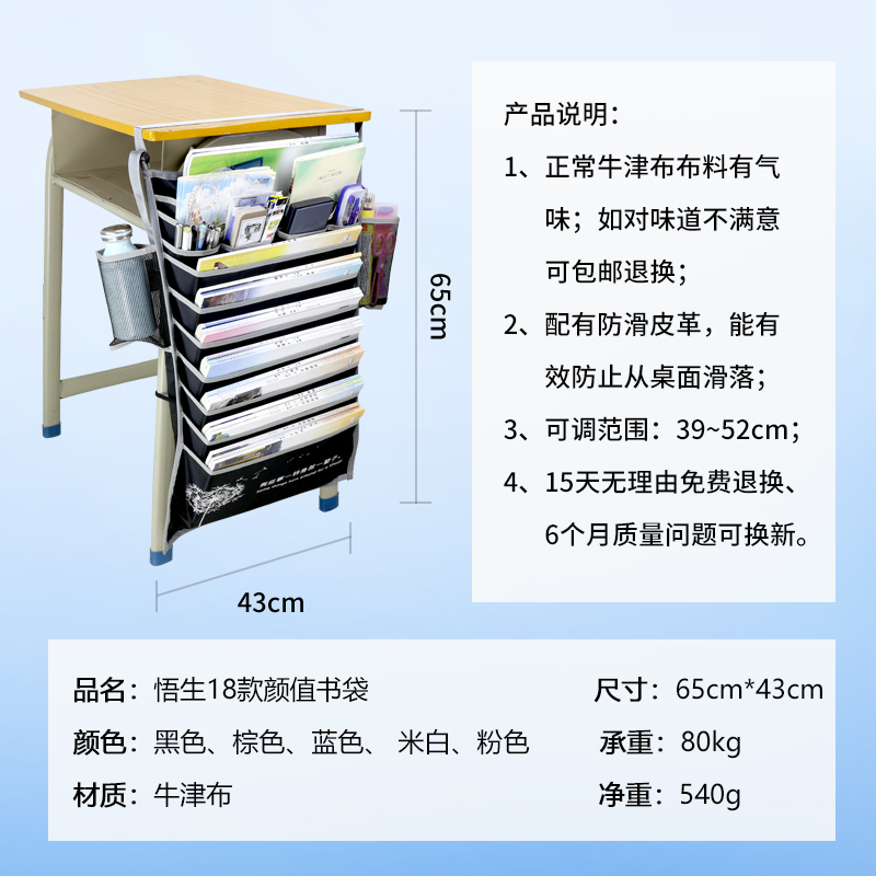 Hanging beside the table, the storage artifact Elementary School High School junior high school students Korean version of the Mori Department classroom desk book stand multi-function simple thick large capacity desktop book desk side hanging book bag ins Japanese Department