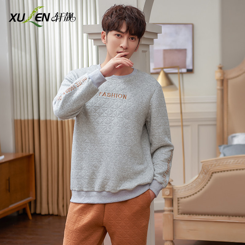 Pajamas men autumn and winter cotton long sleeves air cotton clip thin set spring and autumn large size can go out of the housewear