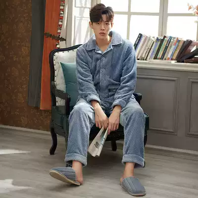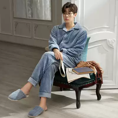 Pajamas men autumn and winter coral velvet padded flannel student flannel home suit winter