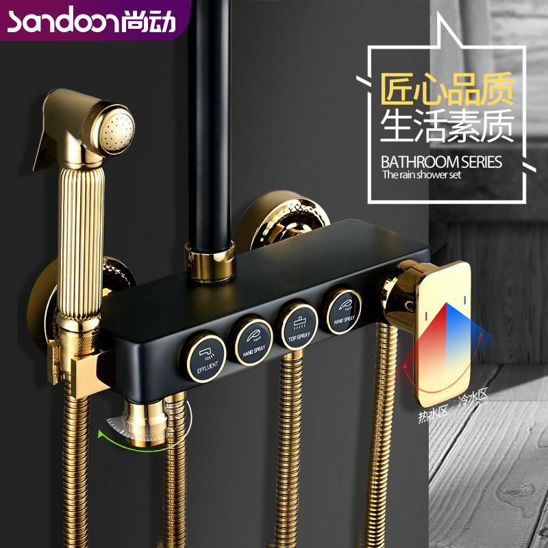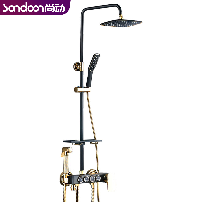 (Four-speed water outlet button adjustment) Black gold shower head