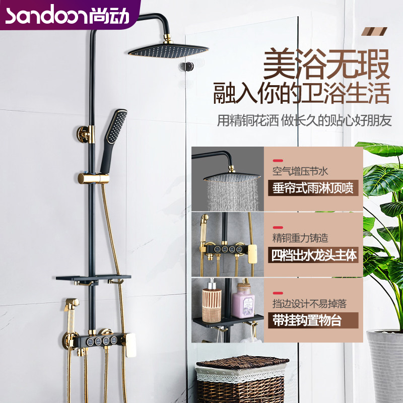Black shower shower set copper core wall-mounted home shower shower bathroom supercharged nozzle bath artifact