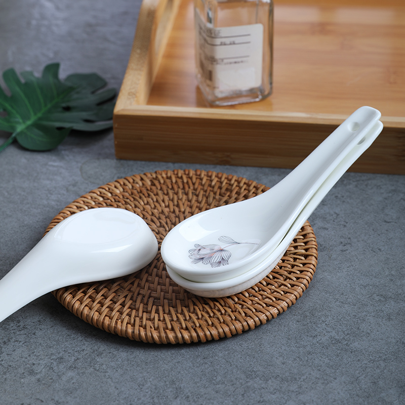 Home Ceramic Spoon Hotel With Dining Room Hotel Chinese Style Small Tablespoon Soup Spoon Flat-bottomed Porcelain Soup Spoon Quality Commercial Porcelain