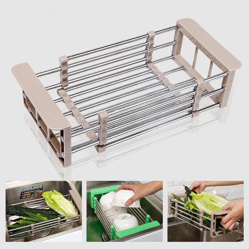 Kitchen Shelve Free of perforated shelves Stainless Steel Sink Flex Drain Basket washing dishes Bowls Chopsticks Drain Racks