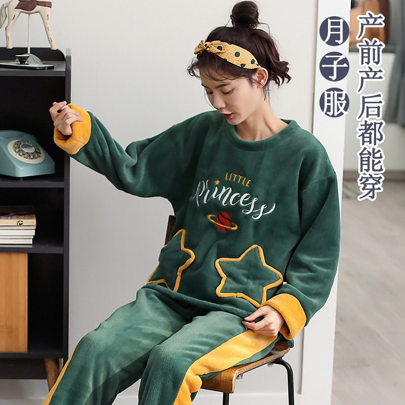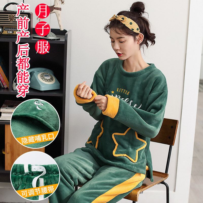 Cute Bear Autumn Winter Thickened gush Coral Suede Pregnant Woman Postnatal Breastfeeding Pyjamas October 11 Maternal Month Subsuit