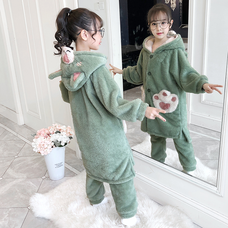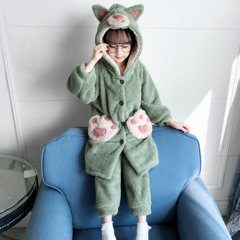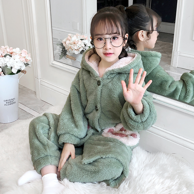 Children Coral Suede Pyjamas Autumn Winter Thickening girls Baby Princess Wind CUHK Flannel Velvet Fever Sweater Pants
