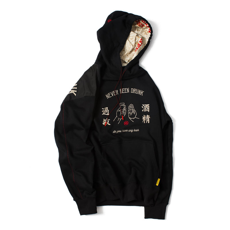 Rock Project Original Design Guochao Original Loose Alcohol Allergy Retro Embroidery Color Matching Sweatshirt Men and Women Hooded