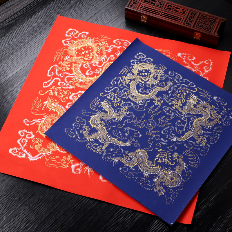 Perpetual Red Fighting Party Wax-dyed letterhead Blue Square Painted Fu Characters Spring United Doors Post Red Paper Blank Handmade Paper