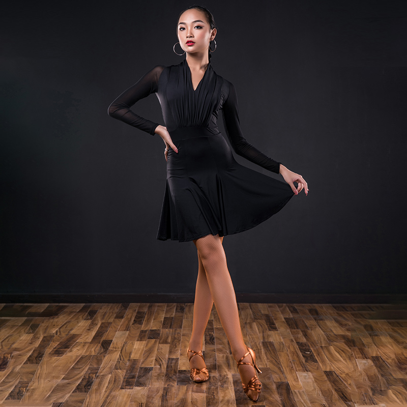 HCdance Latin dance costume female adult new V-neck Latin dance dress suit practice suit sexy dress