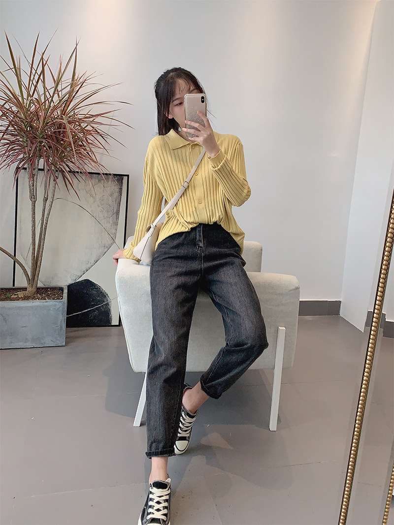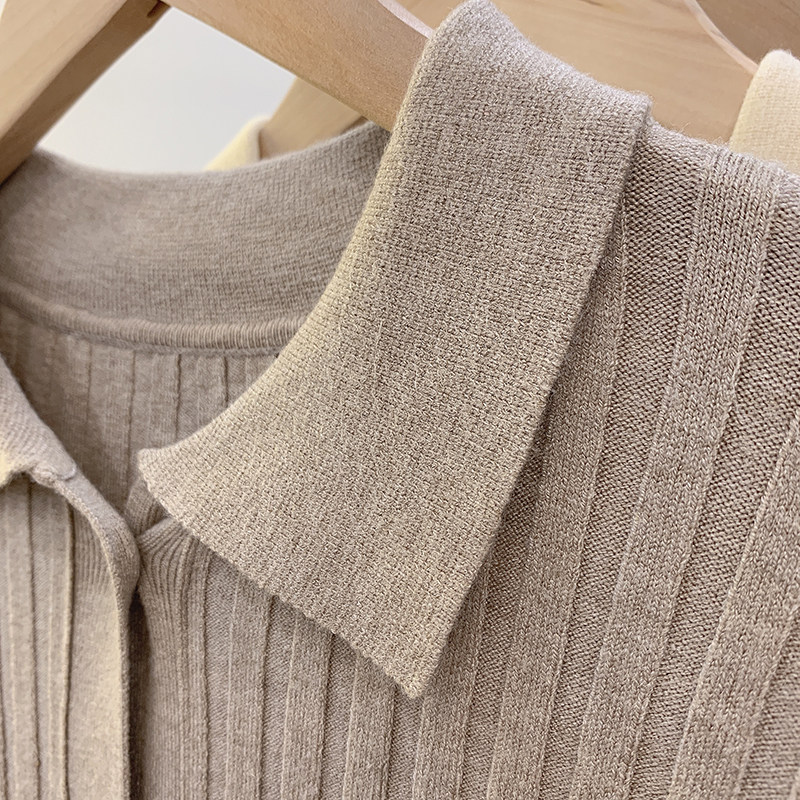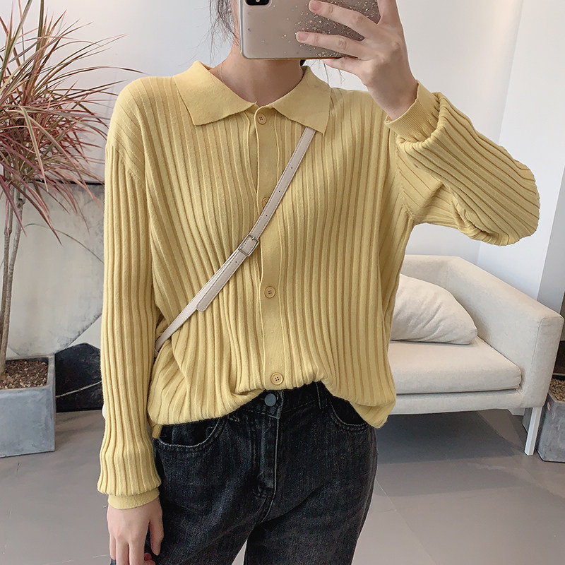 Lolora 2023 new spring Polo collar long-sleeved Korean style retro bottoming knitted sweater women's tide