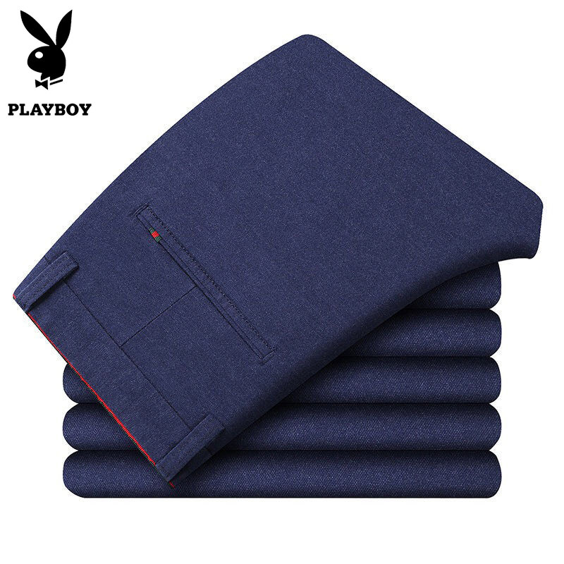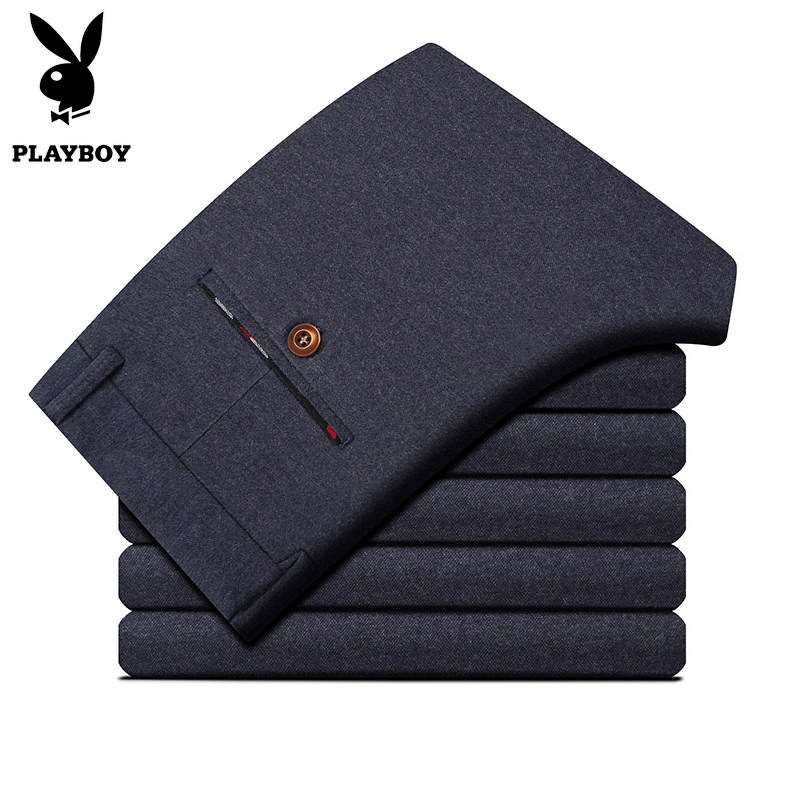 Playboy casual pants men's pants spring and autumn business slim straight trousers youth trend dress elastic trousers
